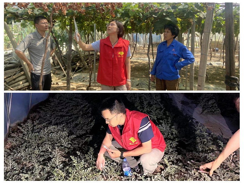 內(nèi)蒙古小分隊(duì)的服務(wù)故事是愛普黨員農(nóng)技服務(wù)隊(duì)的一個典型縮影,在祖國廣袤大地上,愛普科技黨員干部的身影還活躍在各處田間地頭,為農(nóng)戶傾情服務(wù):安徽長豐地區(qū)主栽紅顏草莓,由于連年種植及不科學(xué)施肥,導(dǎo)致當(dāng)?shù)赝寥浪峄?、鹽漬化,草莓重茬病害和死苗現(xiàn)象嚴(yán)重,對此,愛普黨員農(nóng)技服務(wù)隊(duì)自2022年起便根據(jù)當(dāng)?shù)赝寥捞匦浴⒃耘嗔?xí)慣等實(shí)際情況,積極推進(jìn)“微生物菌肥+生物刺激劑”的推廣使用,近年來有效緩解了重茬導(dǎo)致的苗期死苗等病狀,草莓長勢增強(qiáng)、抗病抗逆能力提升,在提高了產(chǎn)量的同時有效節(jié)省了莓農(nóng)投入;今年,富陽區(qū)部分葡萄作物受連續(xù)陰雨及暴雨影響,根部泡水淹死,導(dǎo)致減產(chǎn)甚至絕收,愛普黨員農(nóng)技服務(wù)隊(duì)聞訊立即趕赴富陽東洲葡萄種植戶棚中,進(jìn)行災(zāi)后恢復(fù)技術(shù)指導(dǎo),在實(shí)地水土檢測后為農(nóng)戶規(guī)劃后續(xù)種植方案,幫助果農(nóng)重拾信心,走出生產(chǎn)困境……