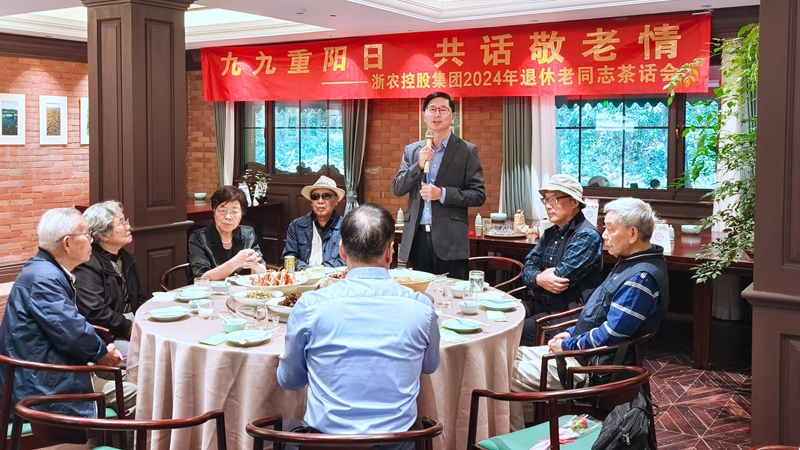 金秋送爽,丹桂飄香。10月10日,重陽佳節前夕,浙農控股集團在杭州西子湖畔為退休老同志舉辦了茶話會活動,邀請老同志們共度佳節。控股集團黨委副書記、總經理曹勇奇,黨委副書記吳小樟,黨委委員、副總經理蔣銘偉,總經理助理陳江等公司領導與近三十位退休老同志歡聚一堂、追憶往昔、共話發展。